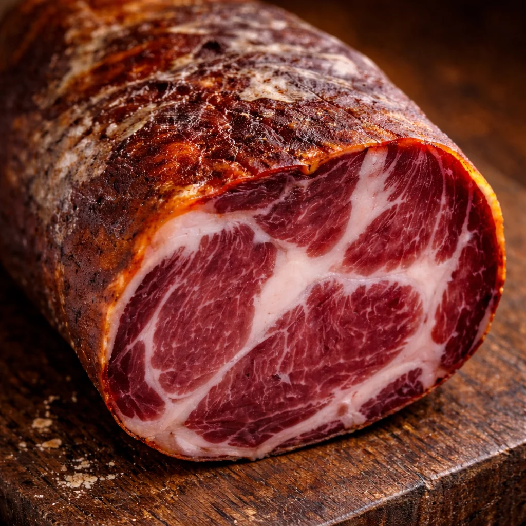 La pieza más jugosa y veteada, curada lentamente para los amantes del sabor intenso y tradicional. Nuestro Cabecero de Lomo destaca por su infiltración natural de grasa, lo que le confiere una ternura superior al lomo tradicional. Elaborado de forma 100% artesana, sin gluten y sin lactosa, es el embutido perfecto para quienes buscan sabor y jugosidad en cada bocado con el auténtico sello de Zamora.