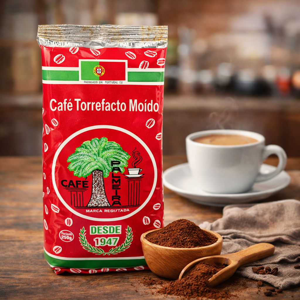 El auténtico sabor de Portugal en tu taza. El Café Palmeira es, para muchos, el estándar del café portugués. Con su molienda perfecta y su equilibrio entre tueste natural y torrefacto, ofrece una taza con cuerpo, aroma intenso y esa crema dorada tan característica. El sabor de siempre, ahora en tu casa.