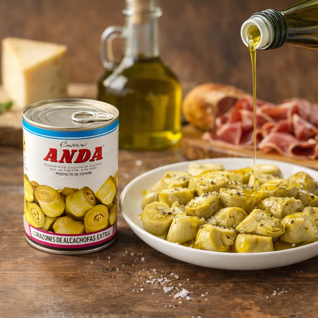 Los corazones de alcachofa de Conservas Anda representan la excelencia de la conserva vegetal en Castilla y León. Cultivadas en tierras zamoranas y seleccionadas con mimo en su punto óptimo, estas alcachofas destacan por una textura excepcionalmente sedosa, totalmente libres de hojas duras o fibras molestas.