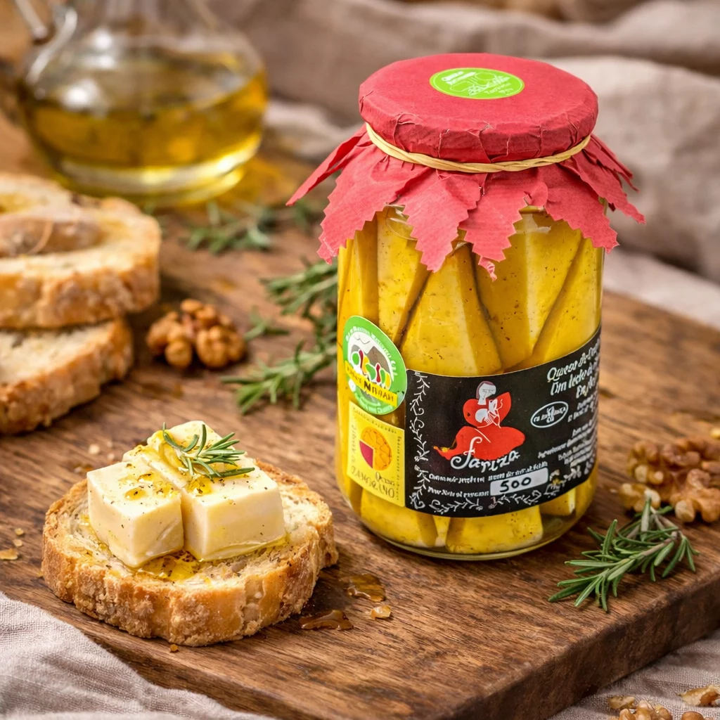 El Queso en aceite «Fariza» es la máxima expresión de la conserva artesana de Zamora. Este producto combina lo mejor de nuestra ganadería con la nobleza del aceite de oliva virgen. Elaborado con queso de oveja de agricultura ecológica, el queso se corta en dados y se sumerge en aceite, permitiendo que la maduración continúe de forma pausada, logrando una textura tierna que se deshace en la boca y un sabor intenso y enriquecido.