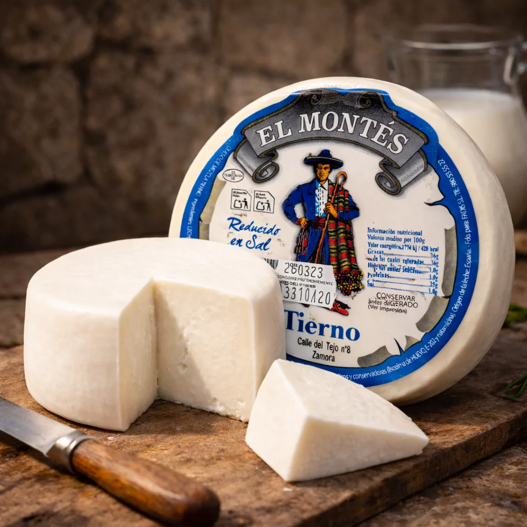 Suavidad, equilibrio y salud en un queso tierno de mezcla con bajo contenido en sal. El Queso Mezcla Tierno «El Montes» combina leche de vaca, cabra y oveja para ofrecer una textura cremosa y un sabor delicado. Es bajo en sal, 100% natural y sin gluten, ideal para combinar con Dulce de Membrillo El Quijote en desayunos y meriendas saludables.