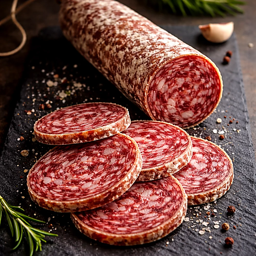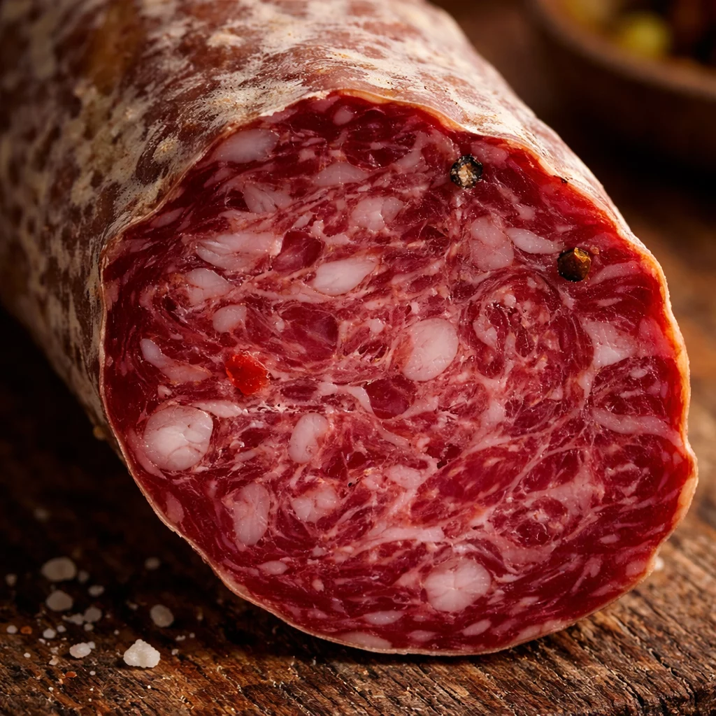 Nuestro Salchichón Ibérico Artesano es el resultado de una receta heredada que respeta los tiempos de curación naturales. Utilizamos materia prima de primera calidad, picada con esmero y aderezada con especias naturales que realzan, sin enmascarar, el sabor característico del ibérico.