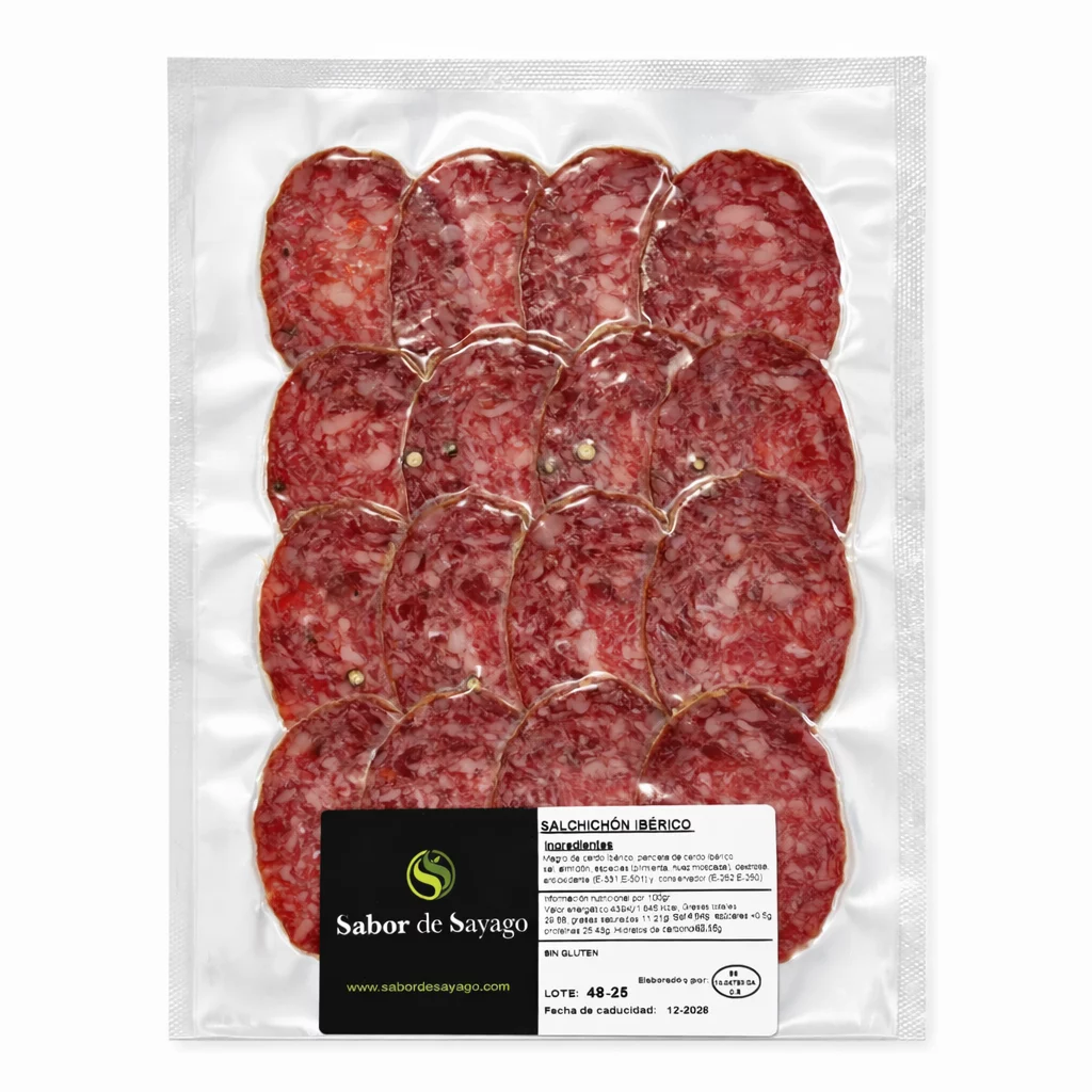 Disfruta de un Salchichón Ibérico elaborado de forma totalmente artesanal, seleccionando las mejores magras para garantizar un sabor auténtico y una textura inmejorable. Un producto 100% sin gluten y sin lactosa, curado al aire de nuestra tierra para ofrecerte la máxima calidad natural.